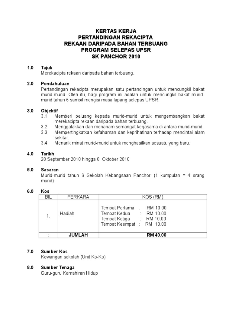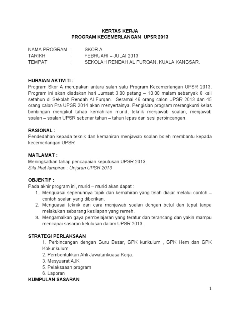 Kertas Kerja Program Selepas Upsr Pdf